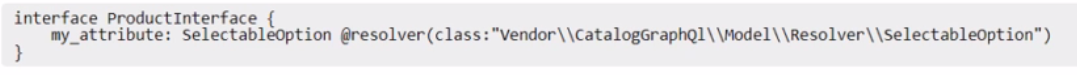 An external system integrates functionality of a product catalog search using Adobe Commerce GraphQL API. The Architect creates a new attribute my_attribute in the admin panel with frontend type select-Later, the Architect sees that Productlnterf ace already has the field my_attribute, but returns an Int value. The Architect wants this field to be a new type that contains both option id and label.