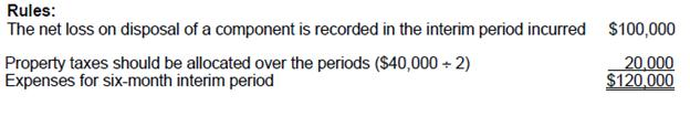 Choice 'b' is correct. $120,000 expense included in the determination of net income or loss for the sixmonth interim period ended June 30, 1991.