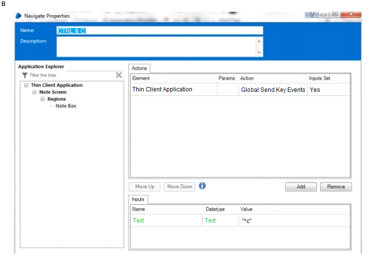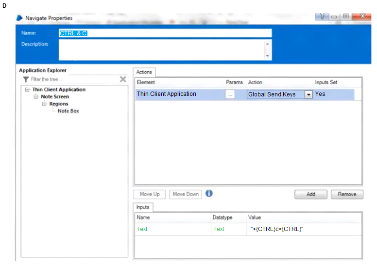 Assuming all the text in the Notes field has been successfully highlighted, which of the following stages will successfully send CTRL & C to the application to copy the highlighted text to the Clipboard?
