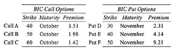 In an effort to manage the risk associated with BIC, Mabry has decided to allocate a portion of his portfolio to options on BIC's common stock. After surveying the derivatives market, Mabry has identified the following European options on BIC common stock: