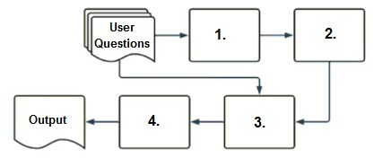 Select the correct sequence of components a user's questions will go through before the final output is returned. Use the diagram above for reference.