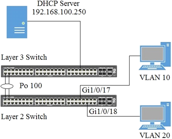 which configuration on interface Gi1/0/18 will allow the DHCP request to reach the DHCP server for the specified VLAN?