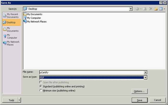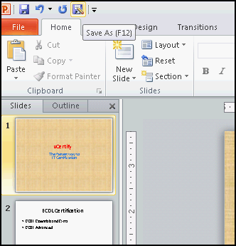 You have created a PowerPoint presentation but due to some reason, you want to save that presentation in PDF. Which of the following steps will you take to accomplish the task?