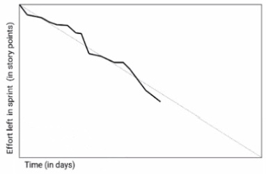 A Scrum team is using a bum-down chart to track their progress. During the sprint, the graph looks like this.