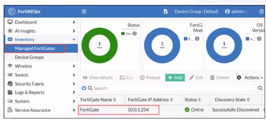 FortiGate has been added to FortiAIOps for management.