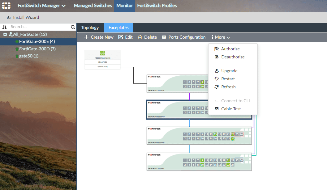 In a FortiLink-managed switching architecture, the FortiGate firewall acts as the centralized controller for downstream FortiSwitch devices. TheFortiSwitch Faceplatesview in the FortiGate GUI provides a physical-style representation of switch ports, including port numbers, operational status, link state, speed, duplex, and connected neighbor information. According to FortiOS 7.6 and FortiSwitchOS 7.6 documentation fromFortinet, this port-level intelligence is derived fromLink Layer Discovery Protocol (LLDP)advertisements received from the FortiSwitch.