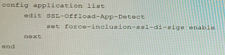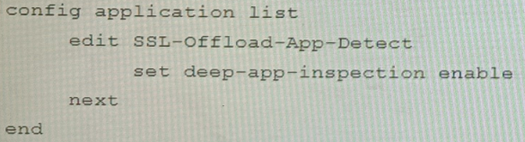 Enable application control in the firewall policy and select the SSL-Offload-App-Detect application list. References: https://docs.fortinet.com/document/fortigate/6.4.0/cookbook/103438/application-detection-on-ssl-offloaded-traffic