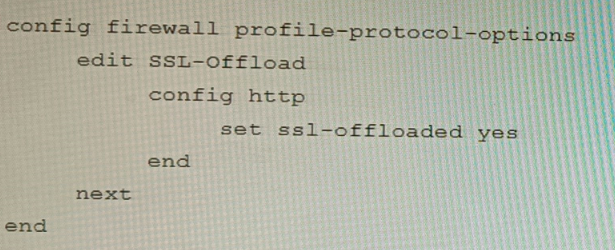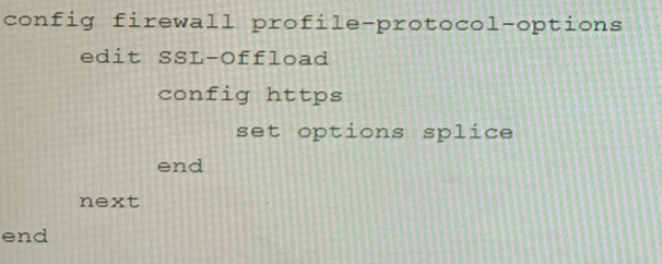 Enable SSL offloading in the firewall policy and select the SSL-Offload protocol options profile.