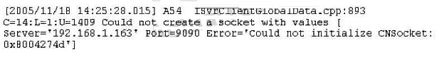 Refer to the I-Server client log entry. What event might have occurred to cause this log entry?