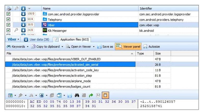 Review the information contained within the Viber application running on an Android device. Which of the