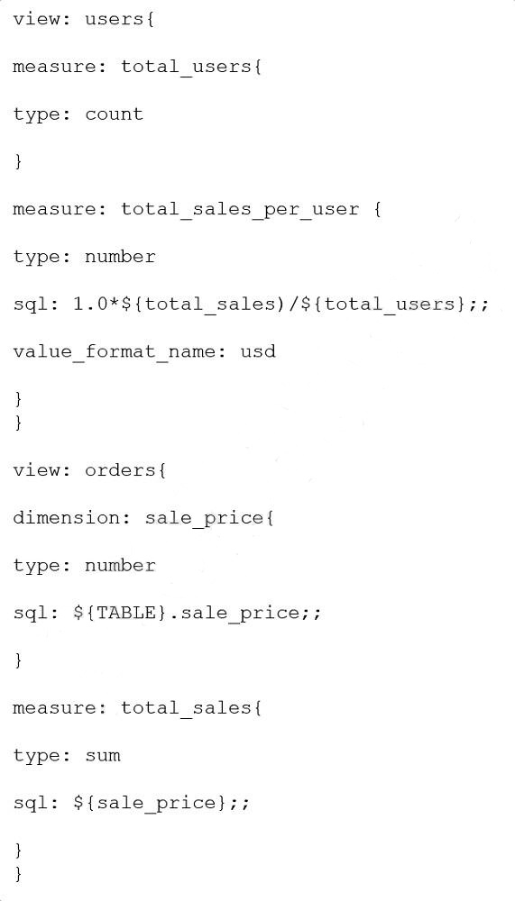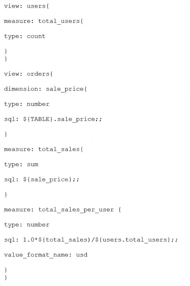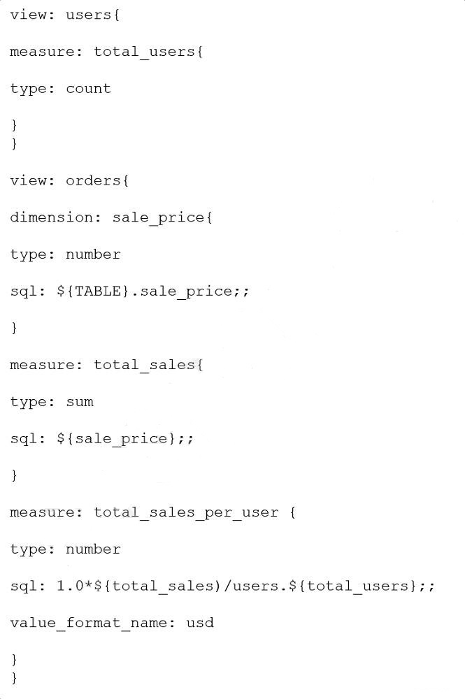 A developer wants to calculate the ratio of total sales from the orders view and total users from the users view.
