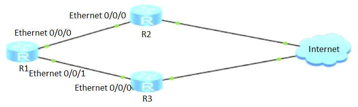 As shown in the following figure, R1 can connect to the Internet through R2 or R3. EBGP connections are set up between R1 and R2 and between R1 and R3. R2 and R3 reside in the same AS and advertise default routes using BGP. Which of the following methods can be used to enable traffic from R1 to the Internet to be preferentially forwarded by R2?
