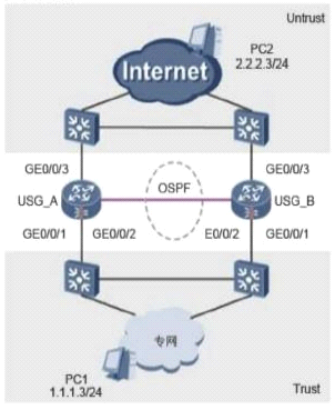The USG_B status is HRP_M[USG_A], and the USG_B status is HRP_S[USG_B]. The status of the USG_A is HRP_M[USG_A]. However, all traffic did not pass USG_A completely, and half of the traffic also passed USG_B.