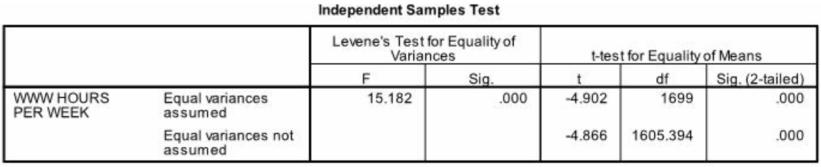 Which interpretation is correct for the Independent Samples T-Test table shown below?