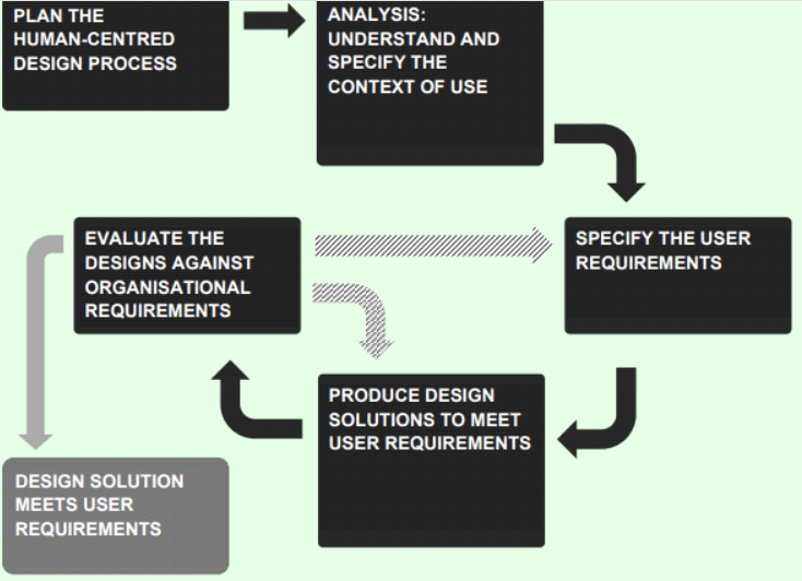 The figure below shows the relationship between human-centred design activities according to ISO 9241 -210. Which two errors does this drawing contain?