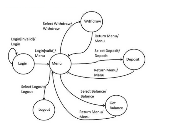 Consider the following state diagram for a simple ATM.