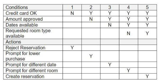 The following decision table shows the conditions/actions that are handled by the current system regarding taking credit cards for reservations.