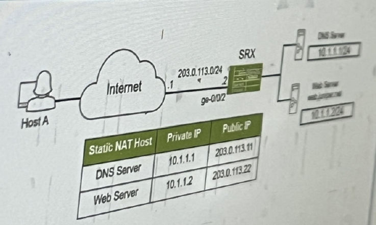 The SRX series device is performing static NAT. you want to ensure that host A can reach the