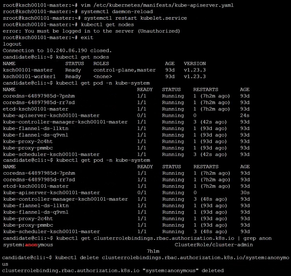 Reconfigure the cluster's Kubernetes API server to ensure that only authenticated and authorized REST requests are allowed.