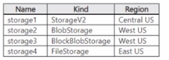 You have an Azure subscription that contains the storage accounts shown in the following table.