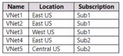 You have the virtual networks shown in the following table.