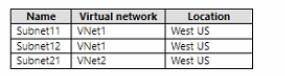 You have an Azure subscription that contains the subnets shown in the following table.