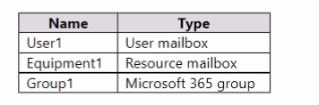 You have a Microsoft Exchange Online tenant that contains the recipients shown in the following table.