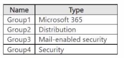 You have a Microsoft 365 E5 subscription that contains the groups shown in the following table.