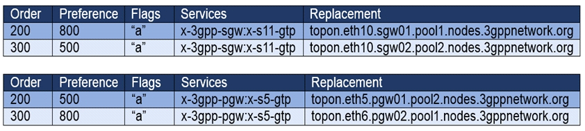 The DNS NAPTR records shown in the exhibit are returned to the MME during SGW/PGW selection.