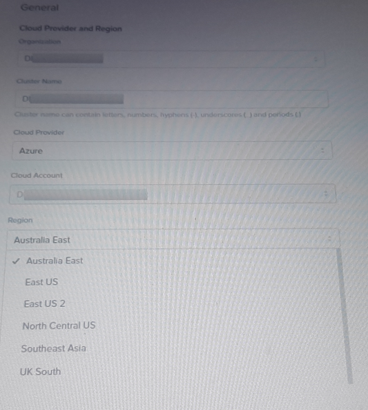 Check the list of regions specified under the NC2 organization cloud account: The list of available regions in the NC2 console might be restricted based on the configuration of the cloud account associated with the NC2 organization. Verifying this list ensures that the desired region is included and available for cluster creation.