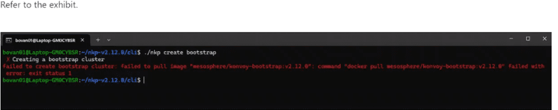 A Platform Engineer is preparing to deploy an NKP cluster in an air-gapped environment. The NKP cluster will be deployed on Nutanix infrastructure using the CAPI Nutanix provisioner (CAPX). The engineer has decided to create the bootstrap cluster first, then NIB-prep an Ubuntu 22.04 OS image that the Linux engineering team has provided in Prism Central. After that, the engineer will deploy the NKP cluster. However, during the first step of creating a bootstrap cluster, the engineer received the error shown in the exhibit. What could be the reason?