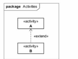 In UML, a specialized behavior that is an extension or modification of a more general behavior is typically shown using the generalization relationship. Option A correctly models this scenario by showing behavior B as a specialization of behavior A, which is indicated by the containment within the package and a nesting of B inside A without any stereotype on the relationship. This representation implies that B inherits the characteristics of A while potentially adding or overriding some aspects of it.