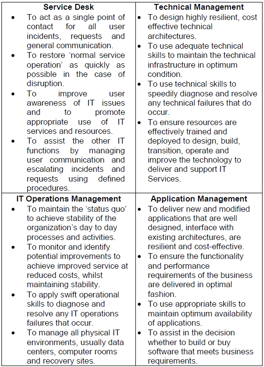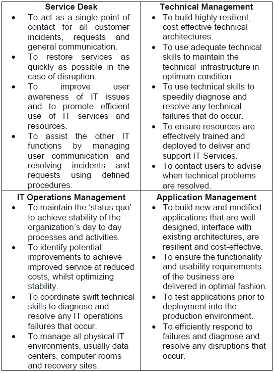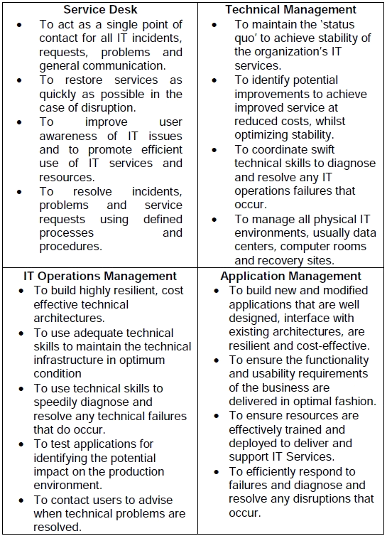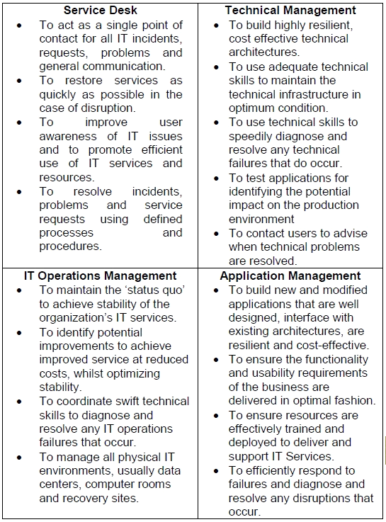 Which of the following responses BEST describes the objectives of the four Service Operation functions?