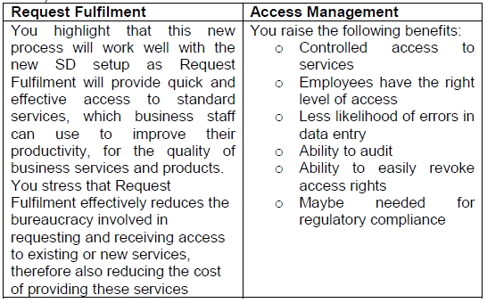 While the IT director does have tentative support from the other directors and CEO, budgets for implementing the Service Operation processes have not been finalized, and still require a business case to be formally submitted.