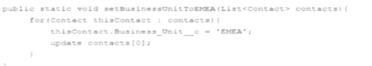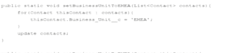 The following Apex method is part of the ContactService class that is called from a trigger: