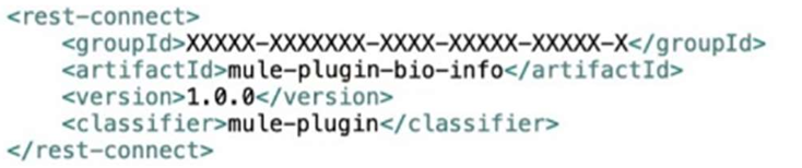 Bioinfo System API is implemented and published to Anypoint Exchange. A developer wants to invoke this API using its REST Connector.
