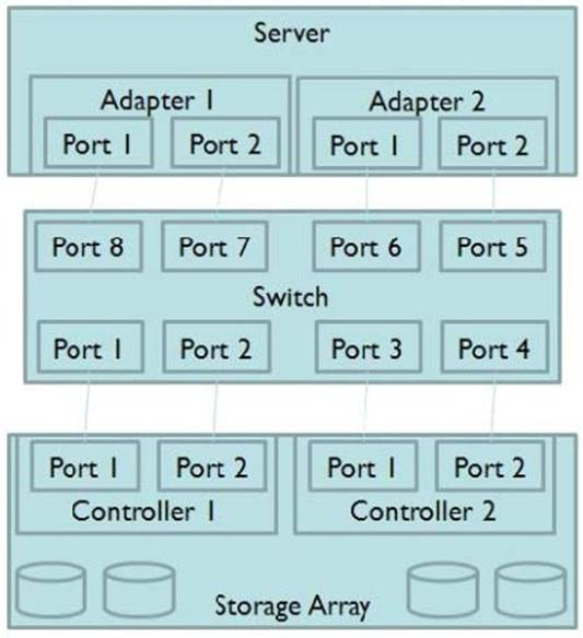 Only one of many servers has poor performance within an enterprise SAN. The server administrator has found high disk timeout values without a decrease in throughput. The server has multiple paths to the storage system but only one path is active at this time.