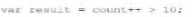 var result = count++ > 10;