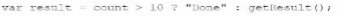 var result = count >= 10 ? 'Done' : getResult();
