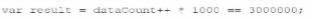 var result = dataCount++ * 1000 == 3000000;